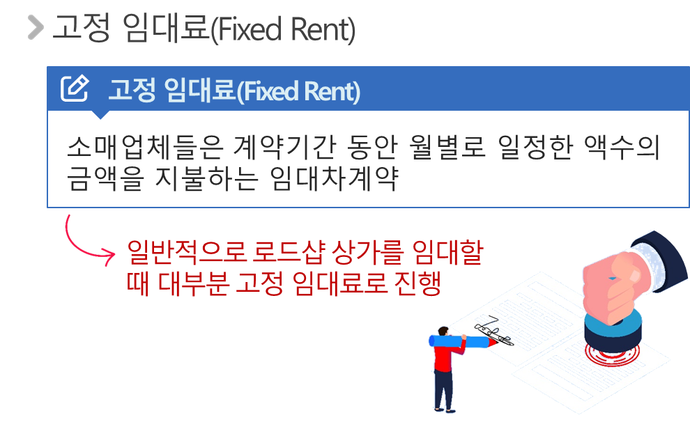 일반적으로 로드샵 상가를 임대할 때 대부분 고정 임대료로 진행합니다.
