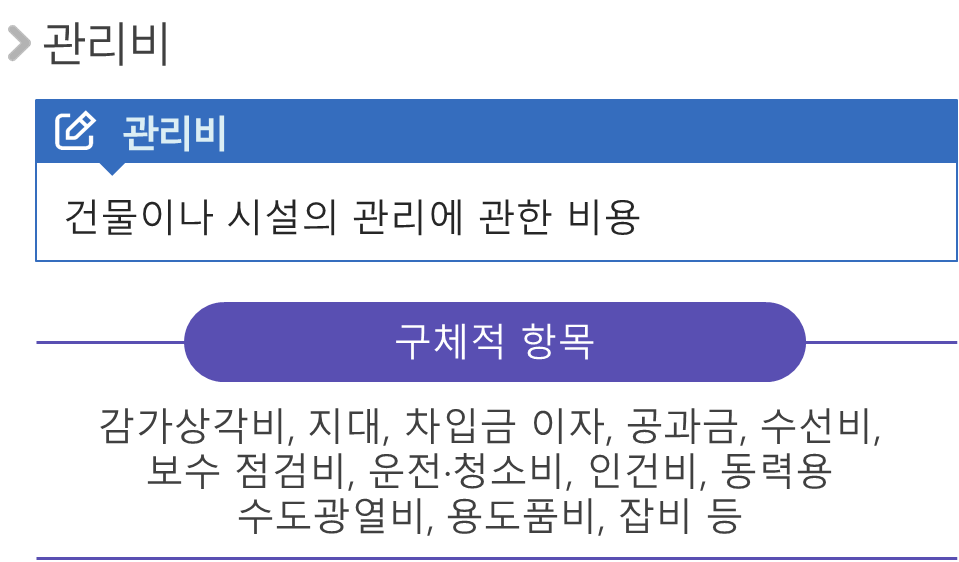 관리비는 '건물이나 시설의 관리에 관한 비용'을 의미합니다.
